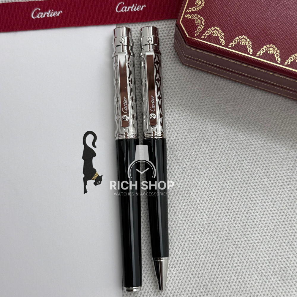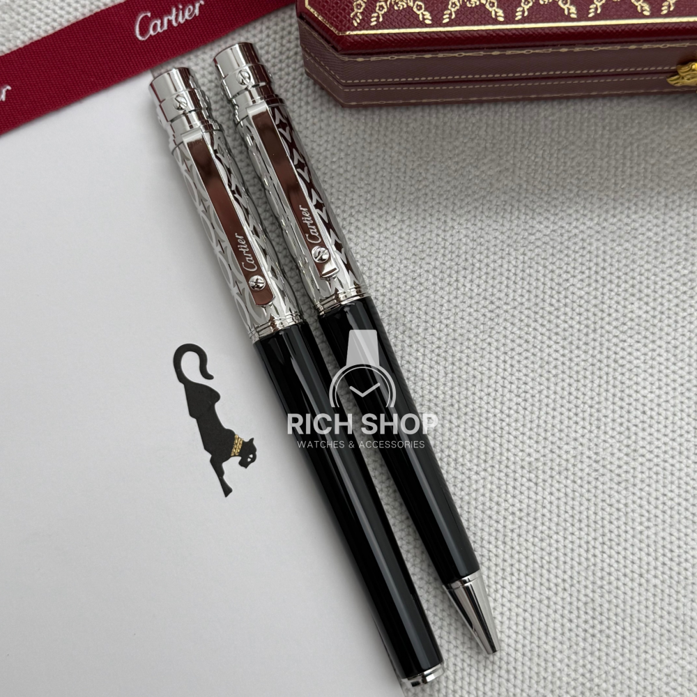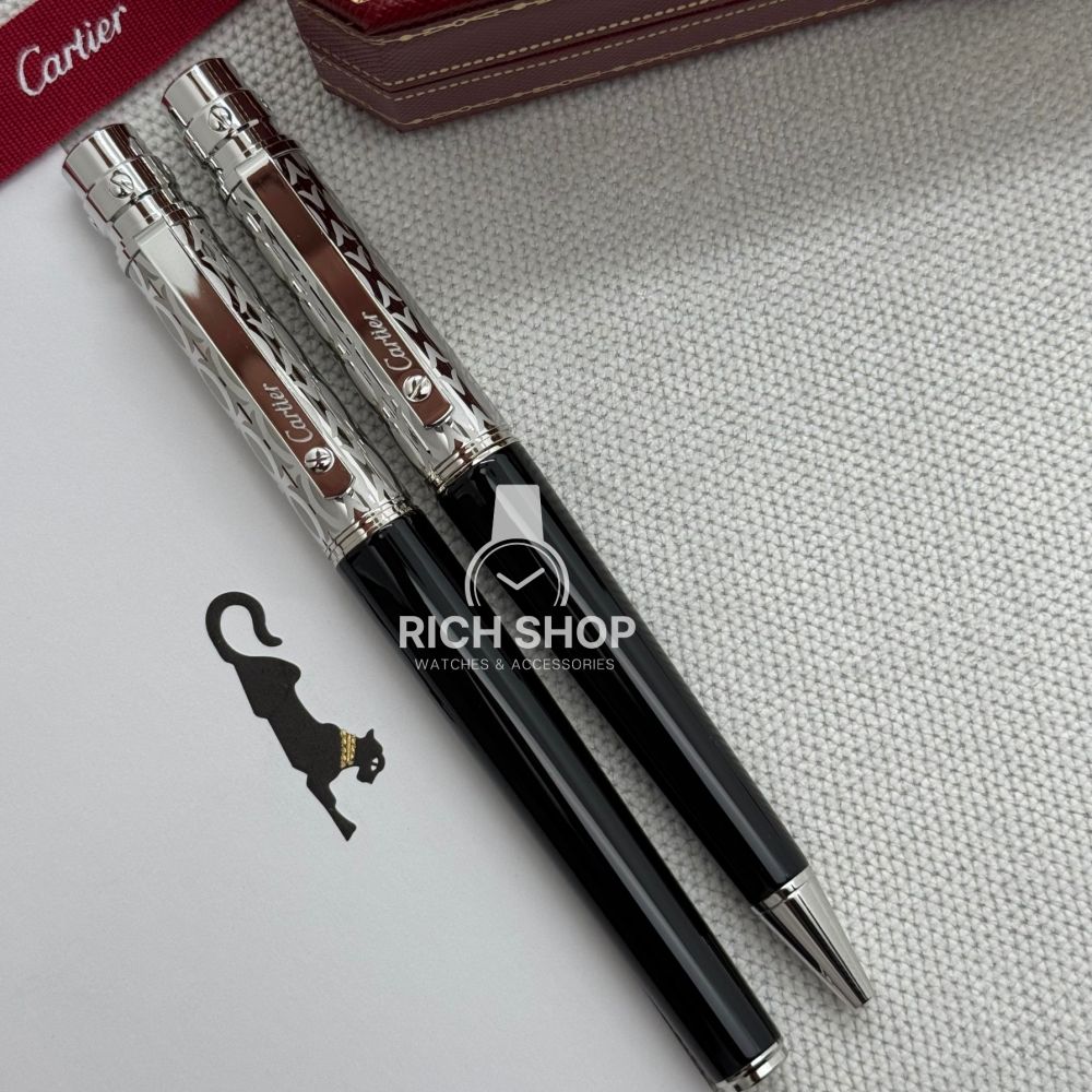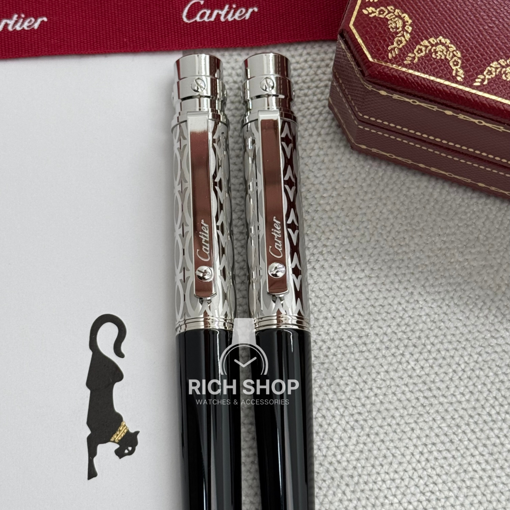 قلم كارتير سانتوس فضي على اسود مزخرف