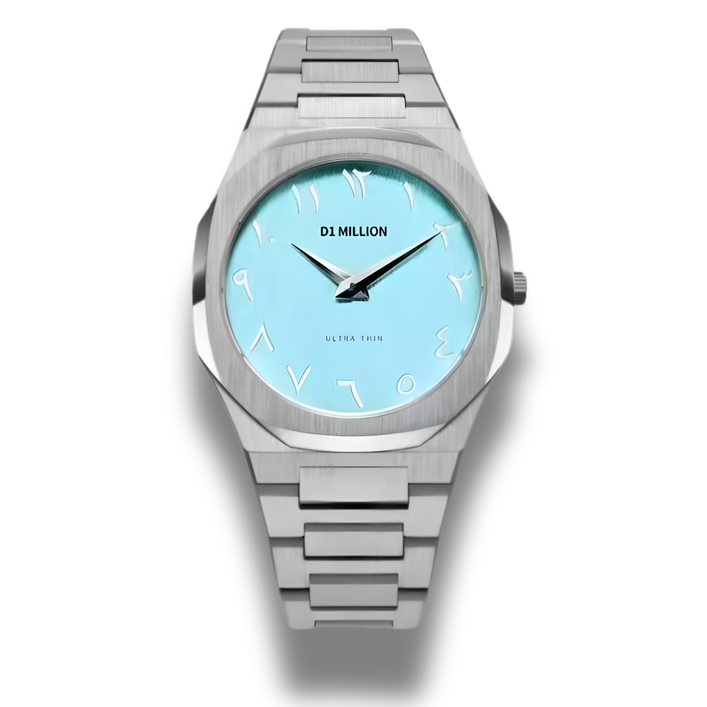 تتميز ساعة D1 MILLION الرجالية باللون الفضي والمينا سماوي بمميزات عدة من أهمها انها بإصدار نحيف وعملي.