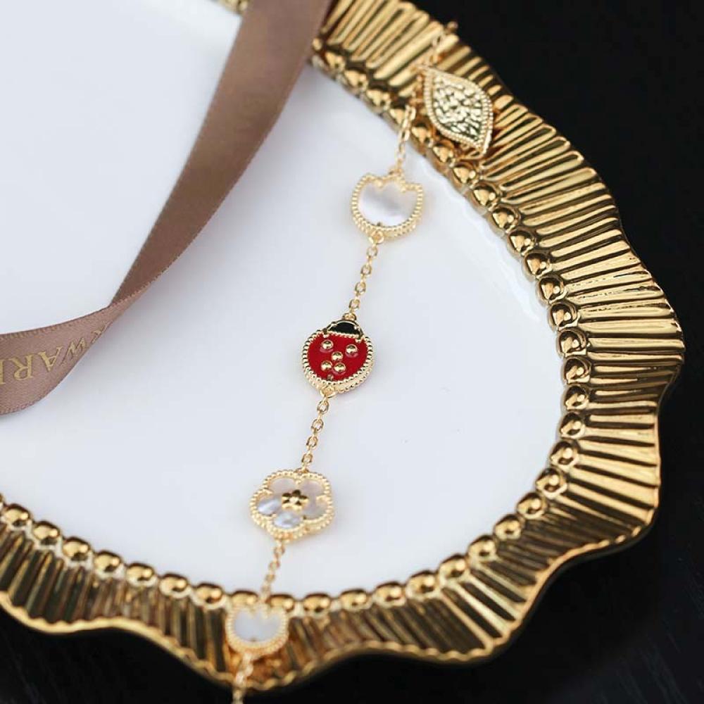 اسورة فان كليف خمس وردات مطلية بالذهب ومرصعة بالزركون ماستر كواليتي .