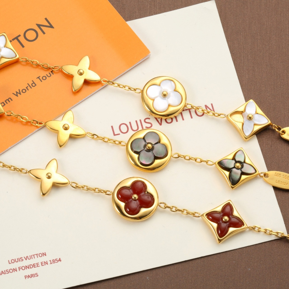 اسواره لويس فيتون النسائيه بطابع LV ستانلس استيل ذهبي .